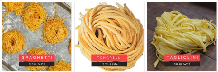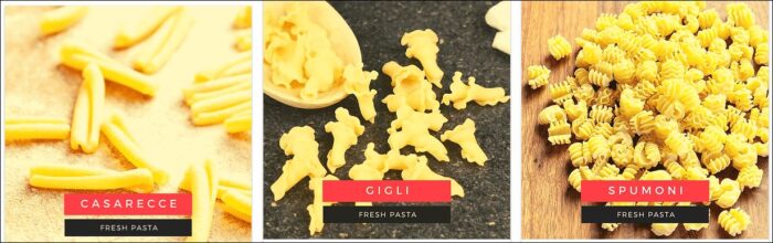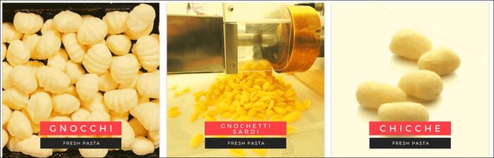Our production of fresh pasta is attributed to the Neapolitan art of pasta making that perpetuates true Italian tradition. Extruded through traditional bronze dies, the pasta gets a rougher surface that can better hold the sauce.